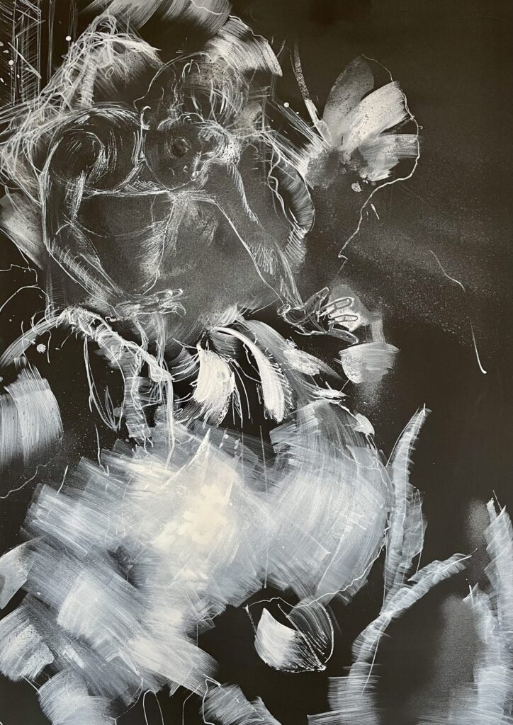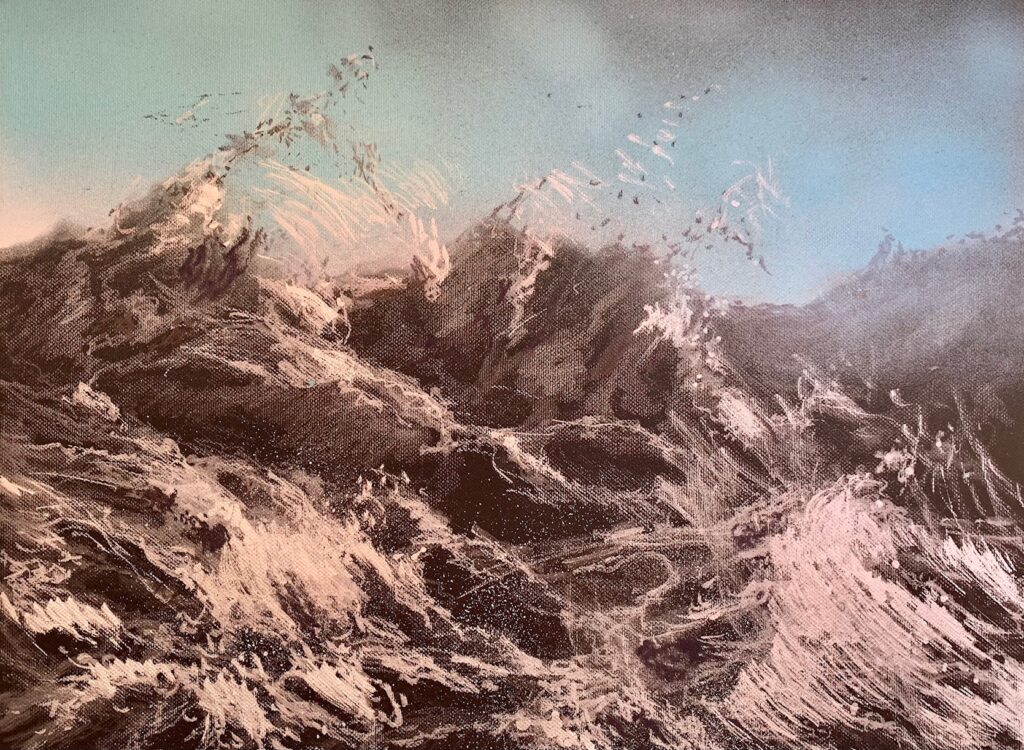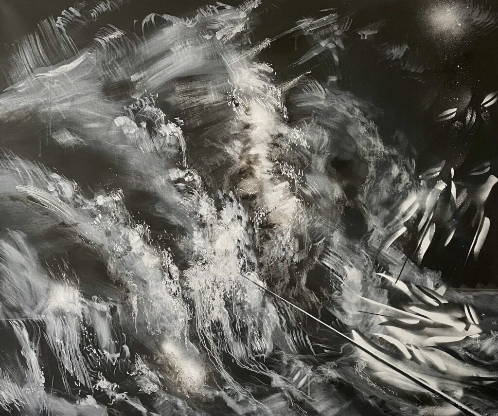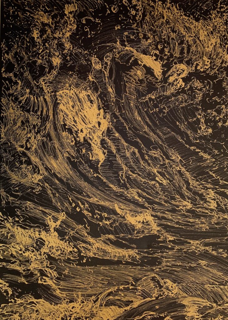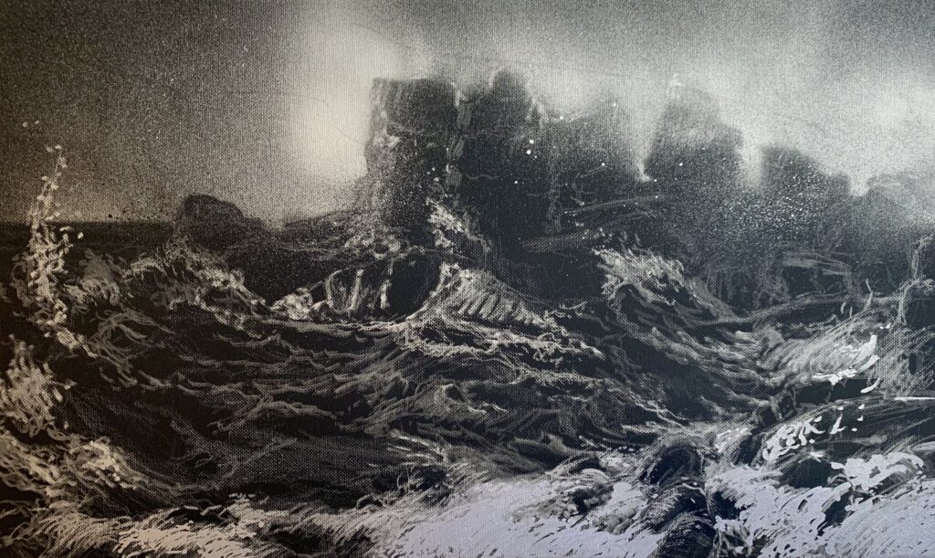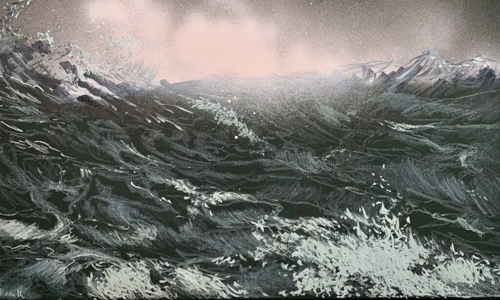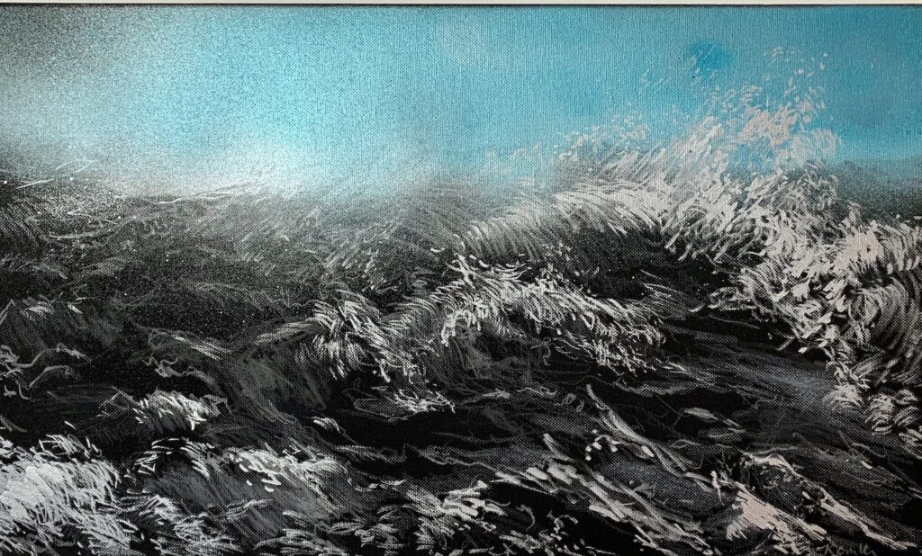 The Berlin artist is concerned with his work and the confrontation of the aesthetics between the beautiful and the sublime. She shows snapshots of roaring and foaming ocean waves, in which the experience of powerful movements of the water water can be just as fascinating as immersing oneself in the haptics of her drawing material. Her wave drawings draw us under their spell. Especially in the worldwide current discourse on human-induced climate change, these images make us aware of the the smallness of mankind in relation to the elemental forces and at the same time their and at the same time their perceived power.