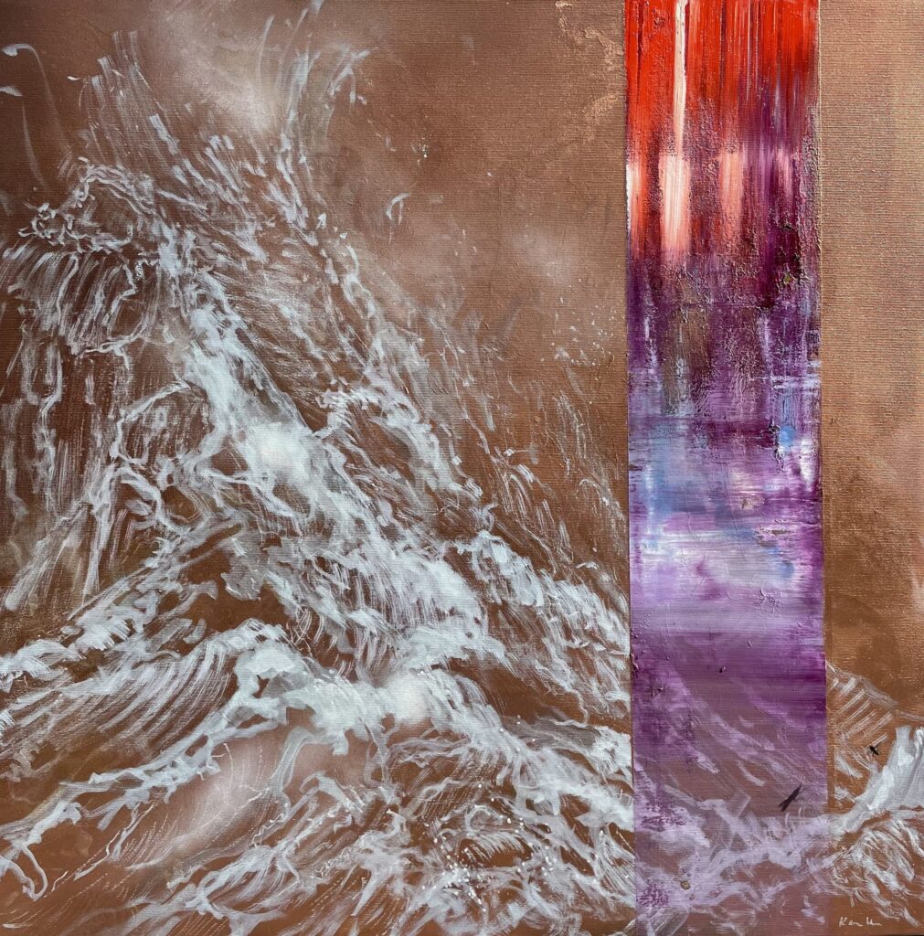 In recent years, Christine Keruth concentrated on a series of works in which she focusse son the conflict between nature and human freedom. Immanuel Kant describes in his „Critique of Judgment“ dramatic natural phenomena on the most extreme scale: bold, overhanging, as it were threatening rocks, thunderclouds towering in the sky, accompanied by lightning and crashes, volcanoes in all their destructive violence, hurricanes with their devastation left behind, the boundless ocean, set in outrage, a high waterfall of a mighty river, etc. (…).